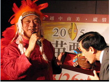 這是真的巧克力嗎?在假面藝術節收到傅學鵬縣長的禮物,台北市長馬英九還俏皮地舔了一下,證明是真的巧克力。