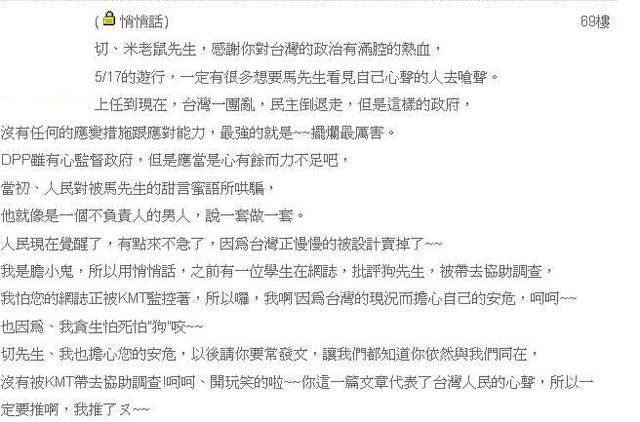 已經開始有人連在回應BLOG文章都只敢用"悄悄話"了