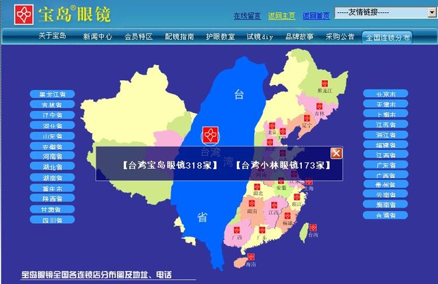 而且中國寶島眼鏡網站依然將台灣列為中國的一省(見下圖)