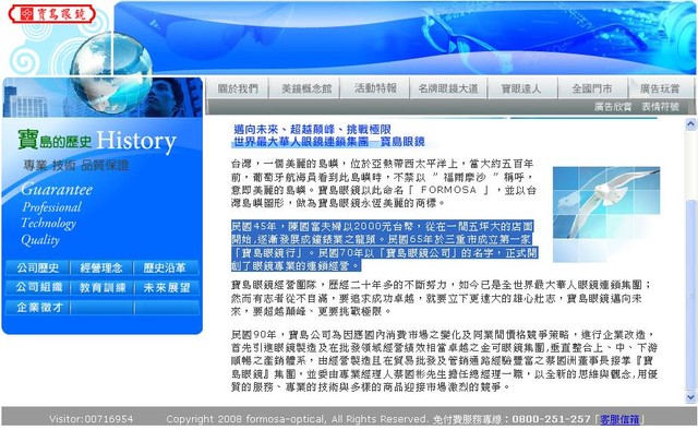 僅首頁的「友站聯結」連結到大陸的寶島眼鏡